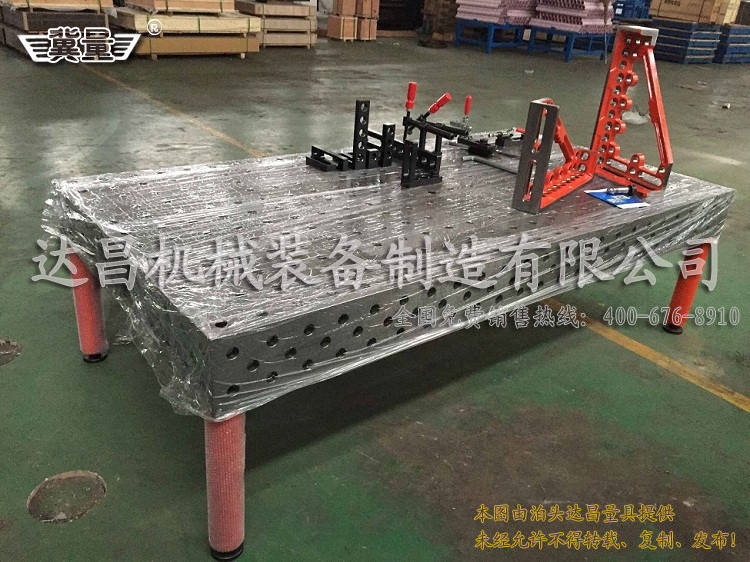 三維焊接工裝是堅(jiān)固耐用的,而且比較好清理,在焊接過(guò)程中用防飛濺液就可以除去表面的焊渣就可以。達(dá)昌生產(chǎn)的三維焊接平臺(tái)都是采用HT300材質(zhì)樹(shù)脂砂鑄造的,工裝也都經(jīng)過(guò)特別的處理,在整體質(zhì)量上面有很大的提升。