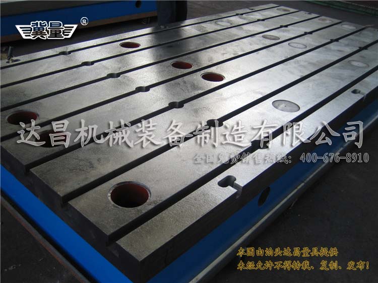 鑄鐵平臺的用途有很多,像檢驗、劃線、焊接、裝配等等。一般檢驗、劃線用都是用平面的鑄鐵平臺,焊接、裝配用就可能需要T型槽的鑄鐵平臺了。很多客戶在購買帶T型槽的鑄鐵平臺的時候,就是看別人家買什么樣的,就想跟著買一樣的,但是這樣購買的鑄鐵T型槽平臺有時候會不適合自己用。像標準的鑄鐵T型槽平臺都是22的開口,開了四趟T型槽的,而產品焊接的時候,如果您用的固定螺絲是M16的,那就需要做18的T型槽開口,22的開口的臺子就不能用。如果您是根據臺面開口來買固定螺絲,那么開口做多大都沒問題了,在鑄鐵平臺上面做開口為14mm、16mm、18mm、20mm、22mm、24mm的T型槽都是可以的。有些客戶比較關注鑄鐵平臺開T型槽后T型槽的公差是多少呢?像普通機床開T型槽的時候,槽是自由公差,槽間距的誤差是±1mm的。用精密數控機床開槽的時候,T型槽直槽的精度是H8,槽間距誤差是±0.02mm的。普通機床開槽跟數控機床開槽的費用也是不一樣的,數控開槽的費用要高一些,如果普通機床開槽就能滿足使用需求,就不用采用數控開槽了。