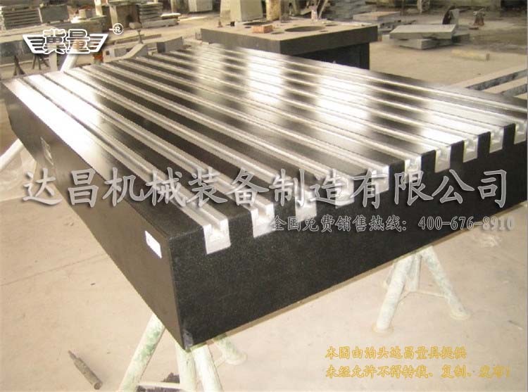 開T型槽的大理石平臺先把大理石平臺放到機(jī)床上面開出槽來,然后用小機(jī)床把金屬條加工好,加工好金屬條再把金屬條鑲嵌到大理石平臺上面的槽子里,使用專用膠粘接好