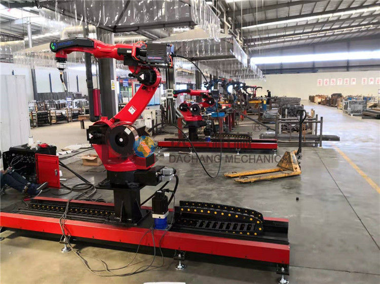 焊接、搬運、碼垛機器人的臂展都是有限的,一般的六軸機器人臂展1.41.61.82.0的都有。在使用中如果我們的工件超過這個范圍,那機器人就夠不到了,這時候我們就需要想一些其它的方法。現在常用的方法就是采用機器人第七軸,也就是機器人行走軌道,使機器人可以在工作的過程中,在軌道上運動,以達到使用效果。下面小編就放幾個使用案例,希望可以讓大家對機器人行走軌道有個更直觀的了解。