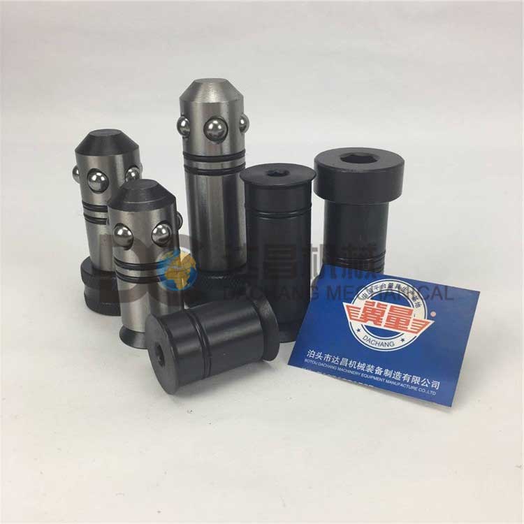 使用方法:鎖緊銷內部裝有5個同心滾珠,當松動鎖緊銷螺紋時,鋼珠會自動縮回鎖緊體內部,這時鎖緊銷可以插入或抽出被鎖工件的圓孔,使用時鎖緊銷插入被鎖工件孔后用手逐漸擰緊鎖緊銷頭部,同時鋼珠逐漸突出,鎖緊銷自動對中并夾緊模塊,然后用扳手擰緊,擰緊力要適當。鎖緊銷擰緊后可達壓緊力50KN,剪切力200KN。
