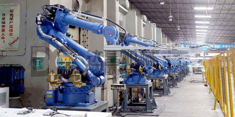 沖壓機器人主要由執(zhí)行機構(gòu)、驅(qū)動機構(gòu)和控制系統(tǒng)三大部分組成。手部是用來抓持工件(或工具)的部件,根據(jù)被抓持物件的形狀、尺寸、重量、材料和作業(yè)要求而有多種結(jié)構(gòu)形式,如夾持型、托持型和吸附型等。運動機構(gòu),使手部完成各種轉(zhuǎn)動(擺動)、移動或復(fù)合運動來實現(xiàn)規(guī)定的動作,改變被抓持物件的位置和姿勢。控制系統(tǒng)是通過對沖壓機器人每個自由度的電機的控制,來完成特定動作。同時接收傳感器反饋的信息,形成穩(wěn)定的閉環(huán)控制,控制系統(tǒng)的核心通常是由單片機或dsp等微控制芯片構(gòu)成,通過對其編程實現(xiàn)所要功能。
