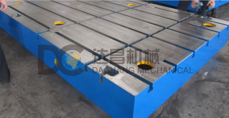 鑄鐵平臺JB/T7974----1999標準制造。平臺精度等級有0123級及精刨,板制成筋板式和箱體式,工作面有長方形、正方形或圓形。工作面采用刮削工藝,工作面上可加工V形、T形、U形糟和圓孔、長孔等。