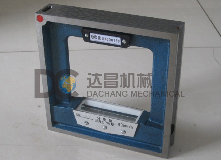 框式水平儀的精度為0.02/1000mm,即每米2C。上面刻度每格就是2C,即每有一格的偏差代表在一米長內有一頭高出了2C